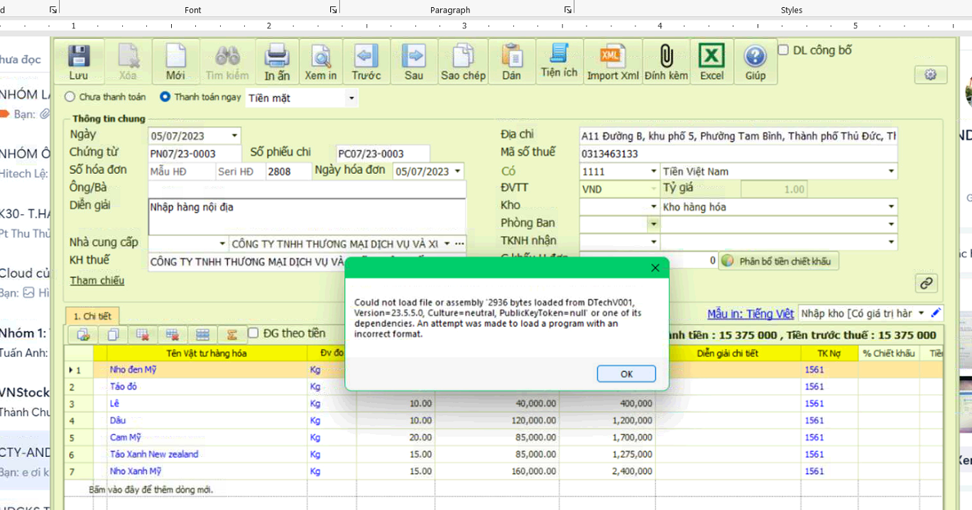### 1. Lưu báo lỗi could not load file assembly 2936 byte..from dtechV001